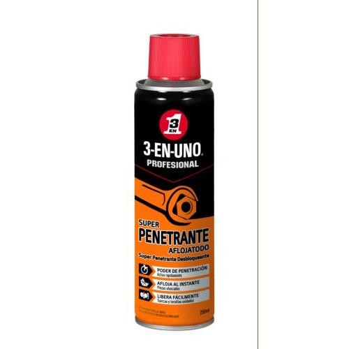Super penetrante aflojatodo 3 en 1, 250ml. Actúa rapidamente. Afloja al instante piezas atascadas. Libera facilmente tuercas y tornillos oxidados.