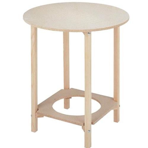 Mesa camilla redonda con las patas fabricadas en madera de pino y el tablero de aglomerado. 50cm. de diametro
