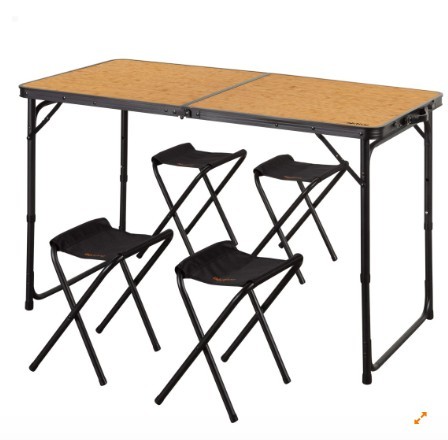 mesa plegable aluminio 4 taburetes negro/madera